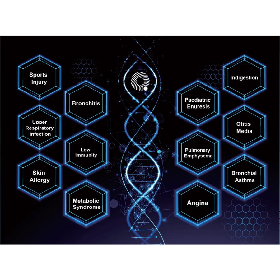 Common applications include conditions like bronchitis, asthma, allergies, frequent colds, poor immunity, and pediatric bedwetting (enuresis). It also assists with neurological balance, digestive regulation, and general wellness